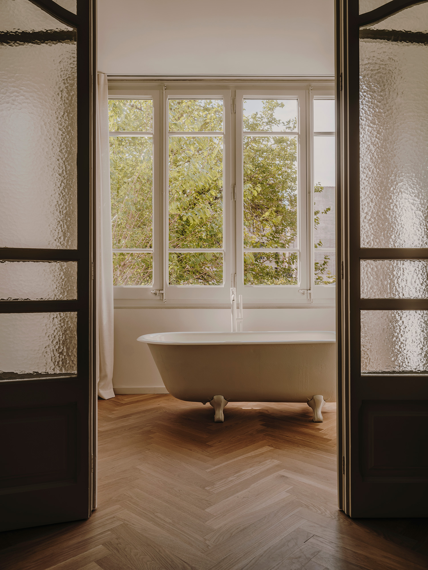 Casa M se encuentra en una finca regia del 1929 cerca de la Plaza Cardona en Barcelona.